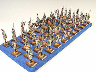 comprend : Napoléon, 45 soldats & 3 cavaliers - reproduit un grand nombre des uniformes des différents corps d'armée - toutes les figurines sont présentées sur support bois avec date & présentation du soldat