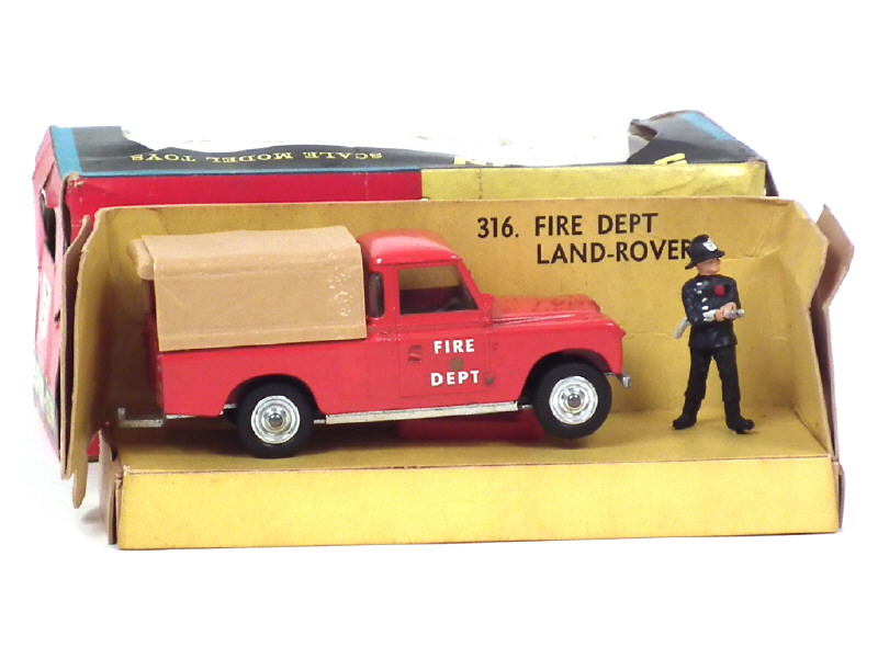 SPOT-ON (GB) 316 LAND ROVER Pick-up bâché 'FIRE DEPT' rouge, bâche beige
