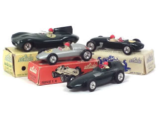 comprend : LOTUS F1, PORSCHE FII, JAGUAR LE MANS (boîte en état 'd') & VANWALL (manque saute-vent & boîte)