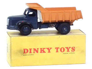 DINKY TOYS (FRANCE) 34A BERLIET Benne carrière MARREL (version avec jantes convexes) bleu foncé & orange