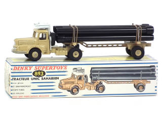 DINKY TOYS (FRANCE) 893 UNIC Saharien transport de pipe-lines (version avec jantes convexes & remorque ajourée) sable & blanc