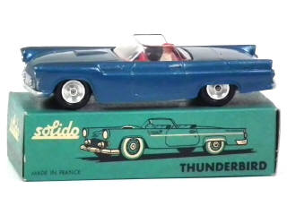 SOLIDO (FRANCE) 113 FORD THUNDERBIRD Cabriolet bleu soutenu métal, intérieur rouge
