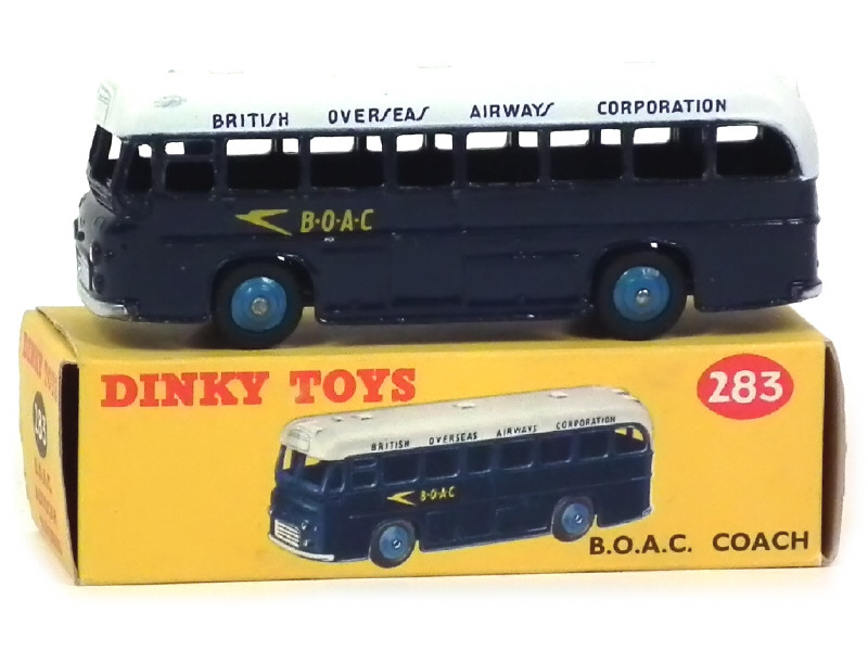 DINKY TOYS (GB) 283 Bus 'B.O.A.C' bleu foncé, toit blanc & jantes bleu vif
