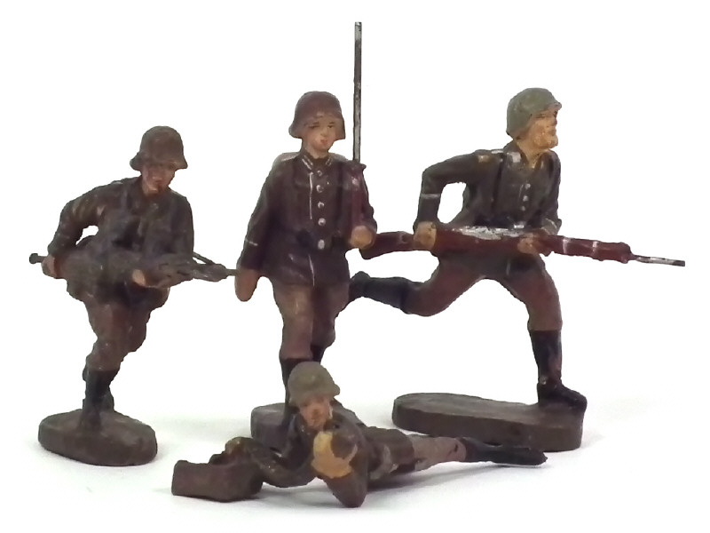 ELASTOLIN (ALLEMAGNE) Ensemble de 4 soldats de l'armée allemande marron