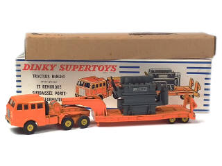 DINKY TOYS (FRANCE) 898 BERLIET Semi-remorque plateau porte-transformateur (version avec jantes de remorque concaves) orange