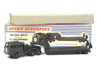 DINKY TOYS (FRANCE) 890 BERLIET Transport de char (version avec jantes du tracteur & de la remorque convexes) kaki