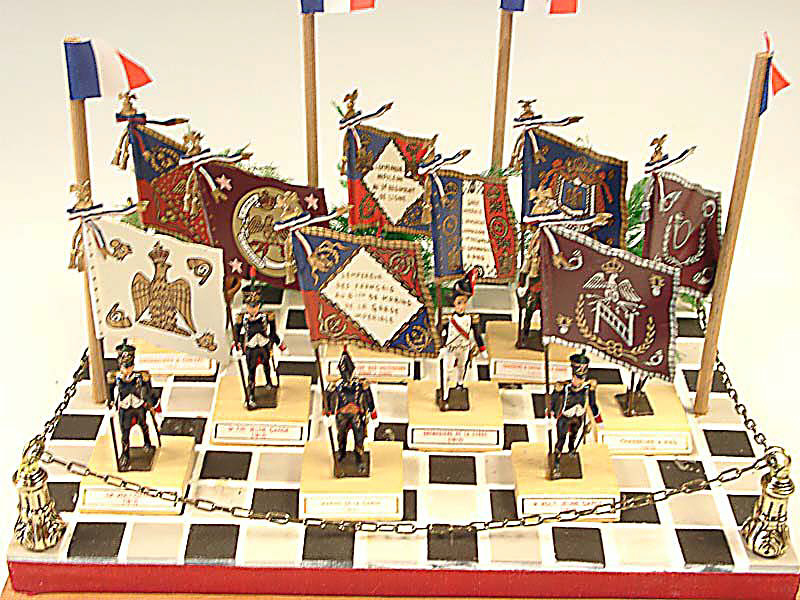 comprend 9 porte-drapeaux & des éléments de décor - avec vitrine de protection