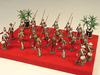 comprend : 11 lanciers (manque une lance), 7 fantassins avec fusils, 9 autres soldats & des éléments de décor - avec vitrine de protection