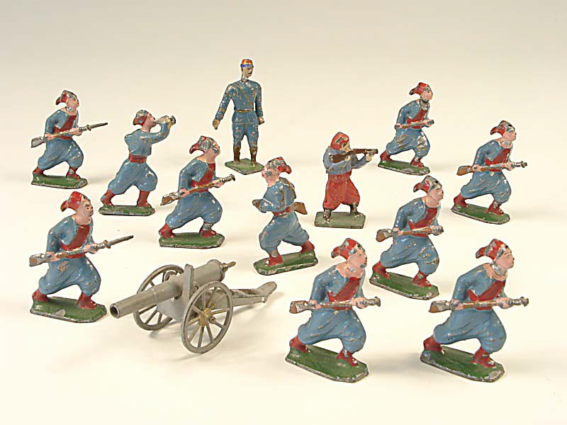 Etats de 'C' à 'D' - comprend : 10 zouaves avec fusil, un zouave au clairon, un officier & un canon - petits manques