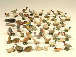 FIGURINES DIVERSES Ensemble important d'animaux de basse-cour en composition