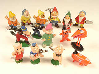 tirés de : BLANCHE NEIGE ET LES 7 NAINS, LES 3 PETITS COCHONS & LES SHADOCKS - on y joint la figurine de P'TIT LOUP