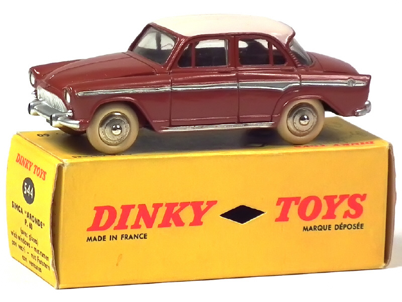 DINKY TOYS (FRANCE) 544 SIMCA ARONDE P60 (version avec jantes convexes) brique, toit crème