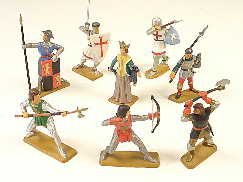 STARLUX (FRANCE) Ensemble de 7 soldats du moyen age & une dame d'époque
