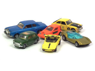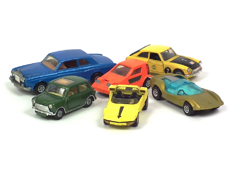 comprend : MGC GT (petits détails de peinture & décalques ajoutés), BERTONE RUNABOUT (état 'A-'), MINI COOPER S, ADAMS PROBE, ROLLS ROYCE SILVER SHADOW (état 'A-') & BOND BUG 700