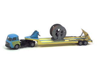 C.I.J. (FRANCE) 4/75 SAVIEM LRS Semi-remorque surbaissée porte-bobines de câble bleu & jaune vert