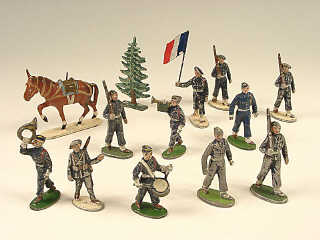 QUIRALU (FRANCE) Ensemble de 11 chasseurs, d'un cheval & d'un sapin