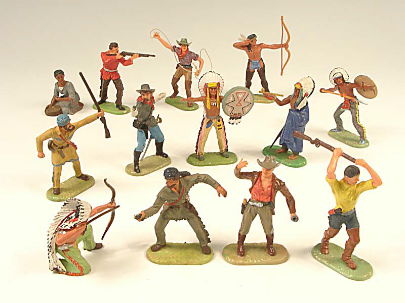 ELASTOLIN (ALLEMAGNE) Ensemble de 7 cow-boys & 6 indiens