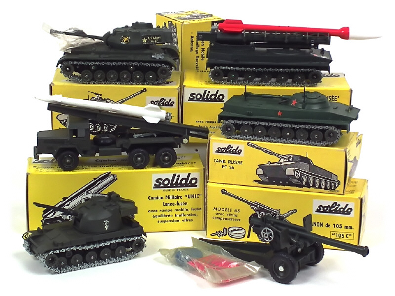SOLIDO (FRANCE) Ensemble de 5 véhicules militaires & un canon