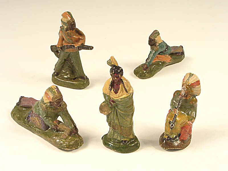 FIGURINES en composition Ensemble de 5 indiens