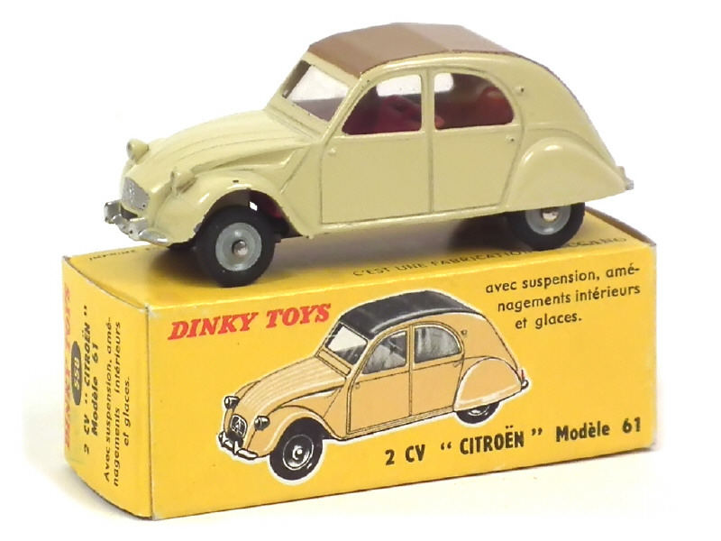 DINKY TOYS (FRANCE) 558 CITROËN 2CV Modèle 1961 sable, capote caramel