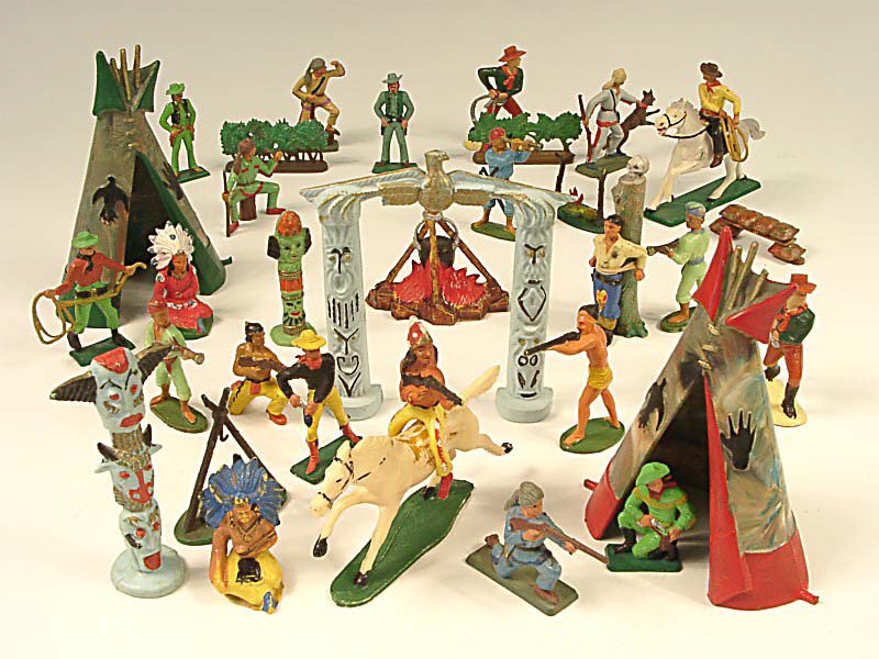 STARLUX (FRANCE) Ensemble de 16 cow-boys, 5 indiens & éléments de décor