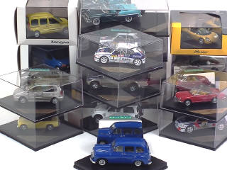 miniatures reproduisant les modèles : PEUGEOT (2 exemplaires différents), RENAULT (5 exemplaires différents), MITSUBISHI (3 exemplaires différents), FIAT, CHEVROLET (3 exemplaires différents), HONDA & MERCEDES (2 exemplaires différents)