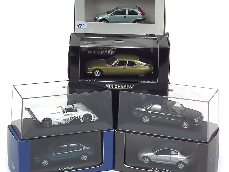 comprend : OPEL CORSA, CITROEN SM, FORD SCORPIO, MANDEO, PUMA, BMW V12 LE MANS, Z8, 335 & Z4 - quelques petits accessoires manquants - manque 2 suremballages