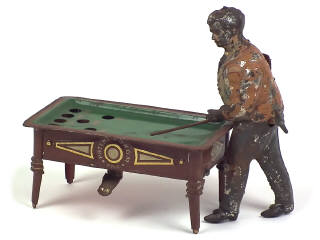 GUNTHERMANN (ALLEMAGNE) Joueur de billard en tôle peinte marron, gris & vert