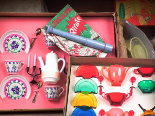 comprend notamment : dinettes, petites poupées (hauteur 4 cm), ustensiles de cuisine, etc ... - possibilité de petits manques