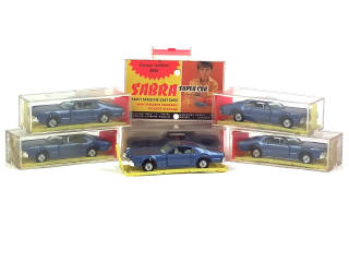 série 'SABRA' - comprend : OLDSMOBILE TORONADO (5 exemplaires identiques) & CADILLAC ELDORADO - manques 5 cartons d'identification de boîtes (quelques petites fêlures)