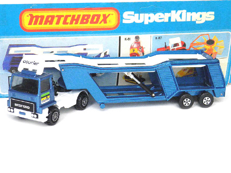 MATCHBOX - SUPERKINGS (GB) K-10 BEDFORD avec semi porte-autos 'COURIER' bleu métal & blanc