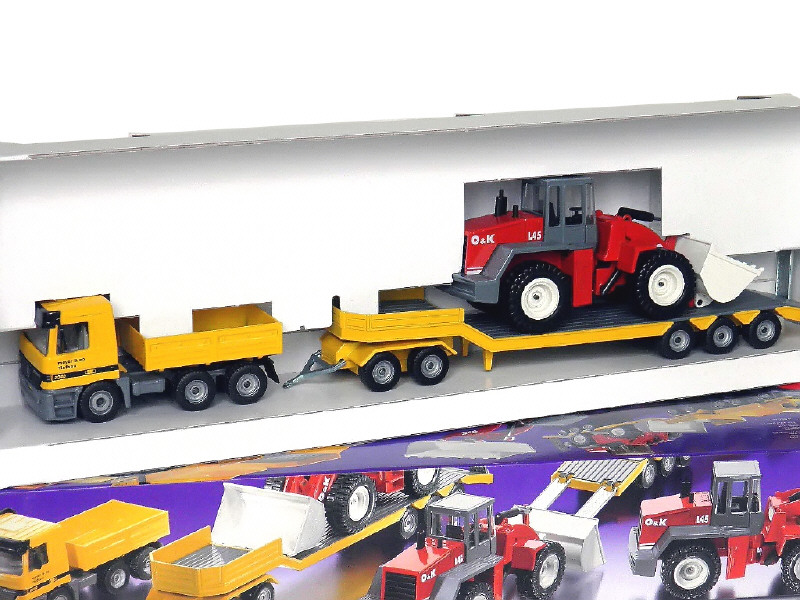 SIKU (ALLEMAGNE) 4113 MERCEDES 2040 avec remorque transportant une chargeuse O&K L45