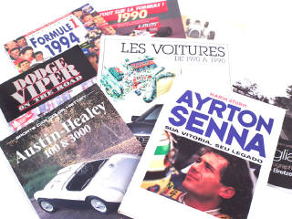 comprend : LES DAMES DE FER, AUDI, FORMULES 1 (1990, 1994), LES VOITURES DE 1970 A 1990 (livres écrits en français), AYRTON SENNA (en portugais), MILLE MIGLIA (italien, anglais, allemand & français), AUSTIN HEALEY & DODGE VIPER (écrits en anglais)