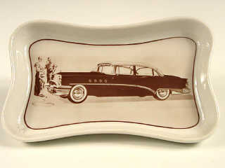 LIMOGES UNIC (FRANCE) Cendrier représentant une voiture américaine des années 1950 blanc