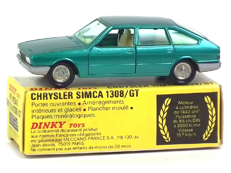DINKY TOYS (FRANCE) 1542 SIMCA CHRYSLER 1308 GT (made in SPAIN) vert métal