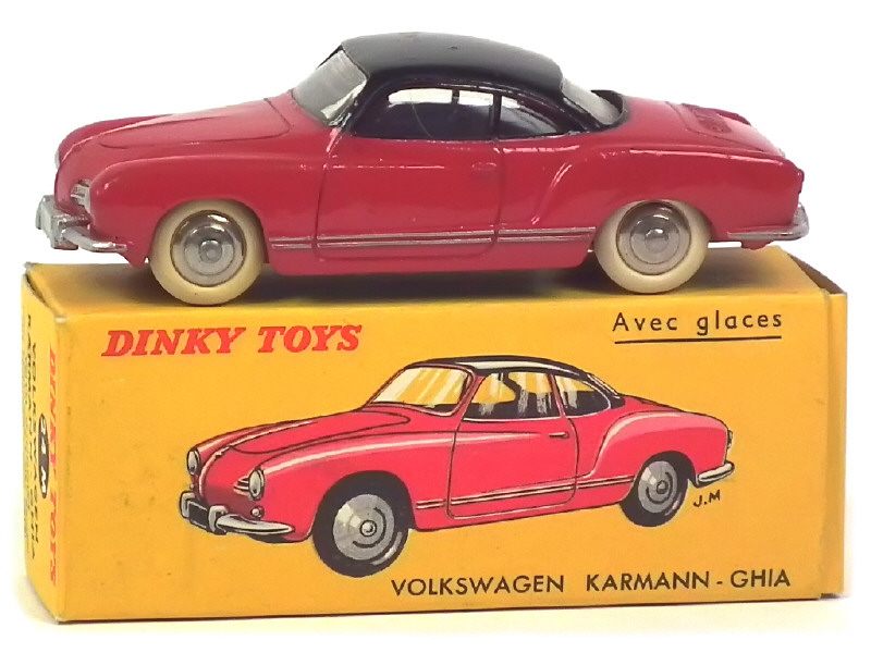 DINKY TOYS (FRANCE) 24M VOLKSWAGEN KARMANN GHIA (2ème version avec avant plat & jantes convexes) rouge, toit noir
