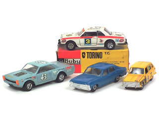 comprend : FORD TORINO compétition (avec boîte en état 'c'), PONTIAC compétition, CHEVROLET CHEVY (petits détails de peinture ajoutés) & RENAULT-IKA 6 compétition - quelques petits manques sur les décalques