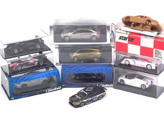miniatures reproduisant les modèles : FORD (2 exemplaires différents dont un kit non monté), MERCEDES (2 exemplaires différents), PEUGEOT (4 exemplaires différents) & RENAULT (2 exemplaires différents dont un kit monté) - petits manques - on y retrouve les marques : PROVENCE MOULAGE, STARTER & SPARK