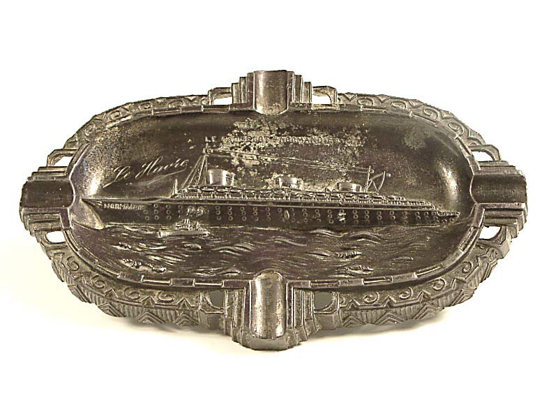 OBJETS PUBLICITAIRES Cendrier représentant le paquebot 'NORMANDIE' gris foncé