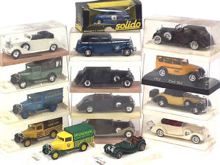série 'AGE D'OR' - miniatures reproduisant les modèles : CITROEN (4 exemplaires différents), FORD, JAGUAR, PACKARD (3 exemplaires différents) & ROLLS ROYCE (5 exemplaires différents) - petits manques - boîtes encrassées - on y joint une RENAULT 5 TURBO de la marque (état 'A.c')
