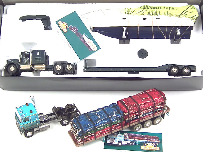 comprend : KENWORTH W925 semi-remorque avec bateau (avec certificat d'édition limitée numéroté 833/1580 exemplaires) & INTERNATIONAL transport d'épaves de voitures compressées (avec certificat d'édition limitée numéroté 933/2000 exemplaires)