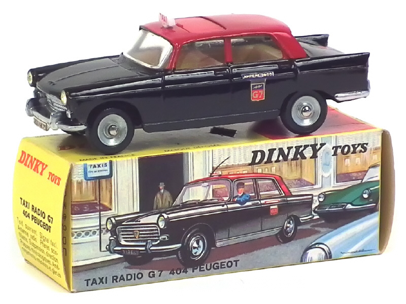 DINKY TOYS (FRANCE) 1400 PEUGEOT 404 'TAXI G7' noir, toit rouge