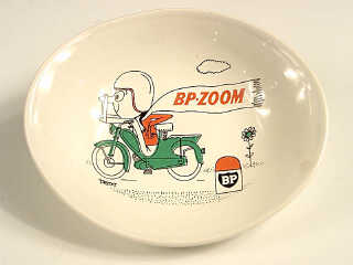 diamètre 11cm - représentant un dessin humoristique de motocyliste - en céramique - publicité 'BP ZOOM'