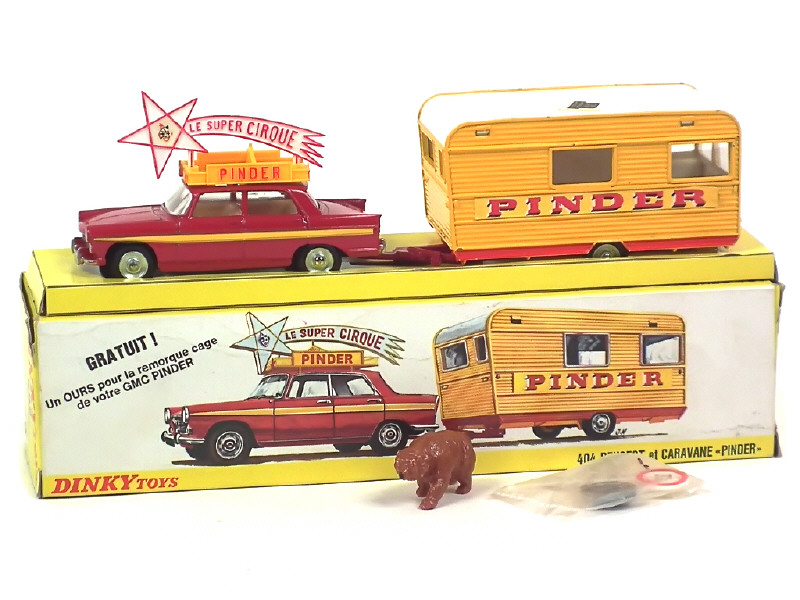 DINKY TOYS (FRANCE) 882 PEUGEOT 404 & Caravane 'PINDER' jaune, rouge & blanc