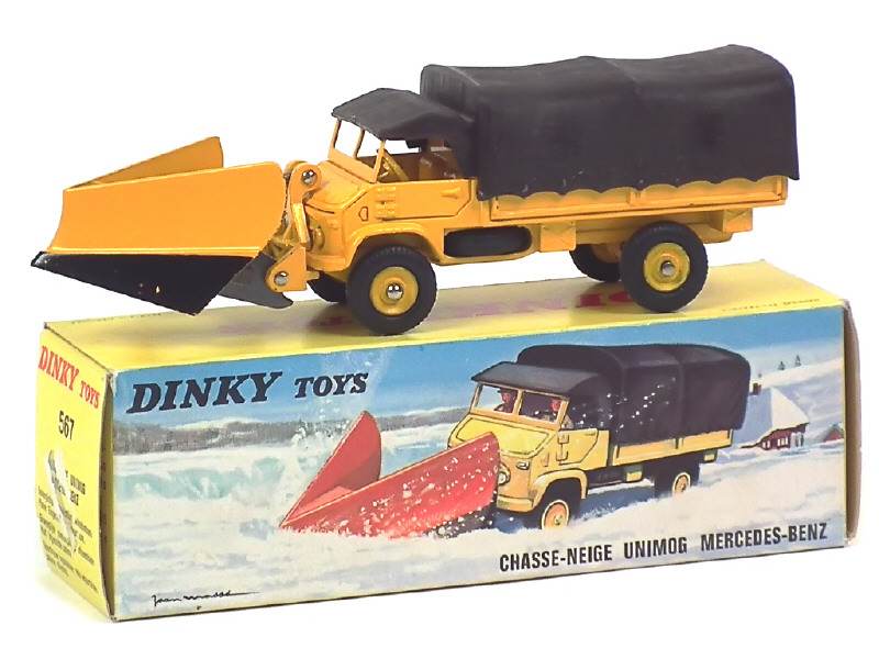 DINKY TOYS (FRANCE) 567 MERCEDES UNIMOG Chasse-neige jaune & noir, bâche marron foncé