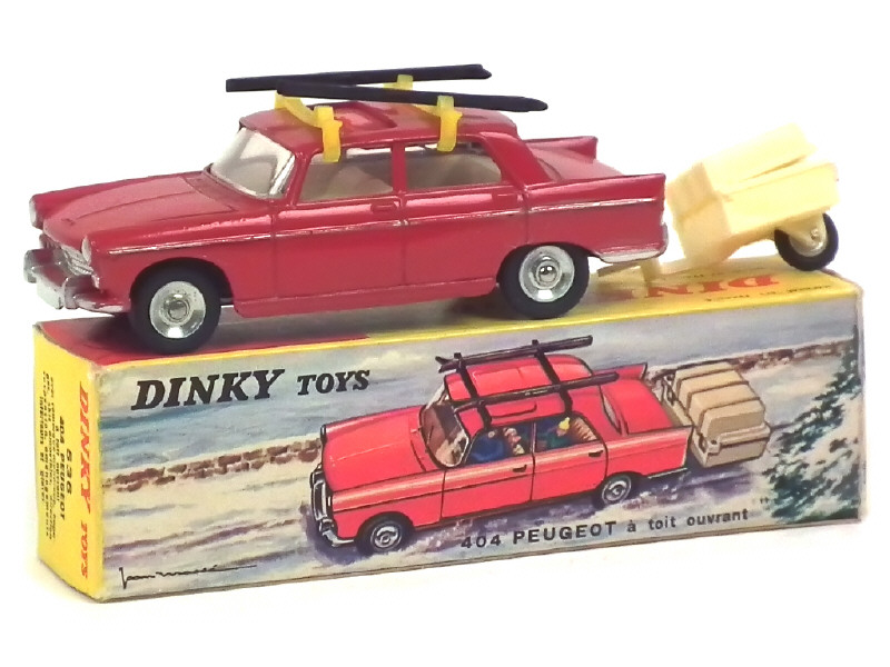 DINKY TOYS (FRANCE) 536 PEUGEOT 404 avec remorque monoroue (skis noirs) rouge