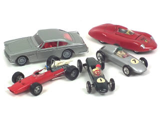 comprend : FERRARI 250 GT 2+2, V12 F1 (micro-éclats sur l'avant de la carrosserie, aileron manquant), PORSCHE F2, LOTUS F1 & FIAT ABARTH (état 'A-')