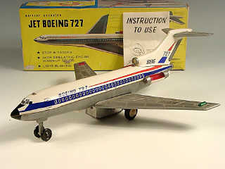 envergure 32 cm - moteur à piles (fonctionne) - en action l'avion avance tandis que ses réacteurs & ses clignotants d'ailes s'allument - lorsqu'il s'arrête ses réacteurs deviennent plus lumineux puis il repart - avec notice