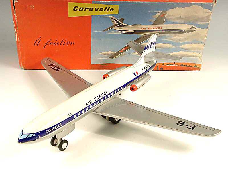 JOUSTRA (FRANCE) 547 CARAVELLE 'AIR FRANCE' en tôle lithographiée gris métal, bleu & blanc