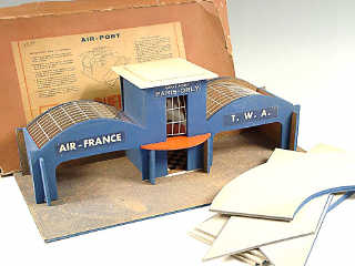 dimension 42 x 20,5 cm - comprend 17 pièces à assembler y compris les 7 éléments de pistes d'atterrissage - le système d'assemblage & les éléments ressemblent en tous points aux gares ferroviaires démontables de chez MECCANO
